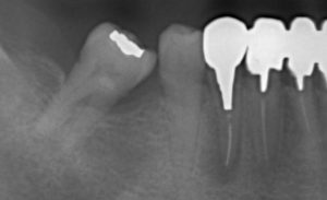 以前に他院にて根管治療を受けられた際に折れ込んだファイルが根管内にあります。