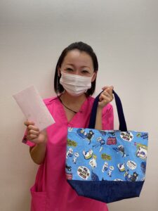 受付の岡村さんの復帰を前回お伝えしましたが、岡村さんの産休前に挨拶できず会いたかったと、ずっと診させていただいている患者さんから復帰祝いの手作りバックと手紙をいただきました。